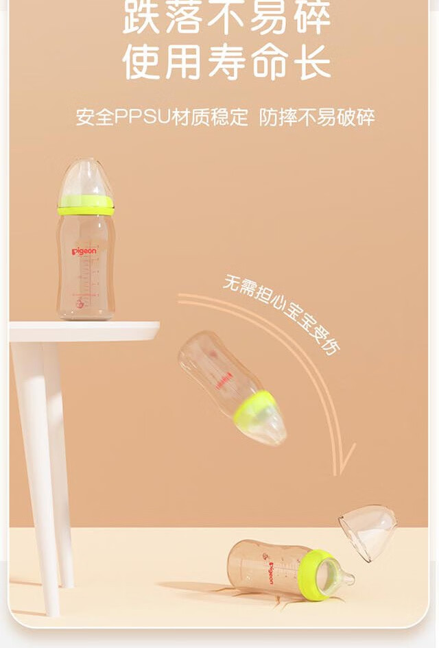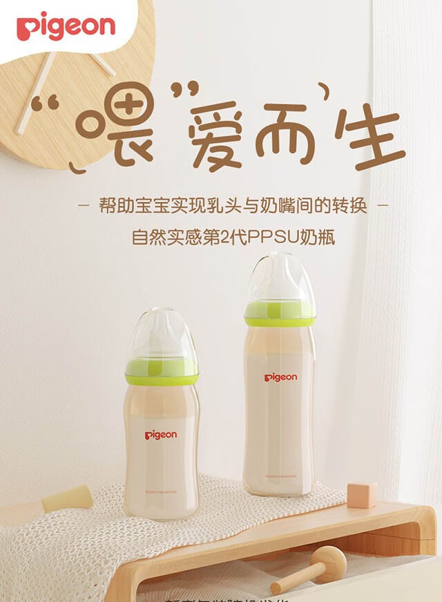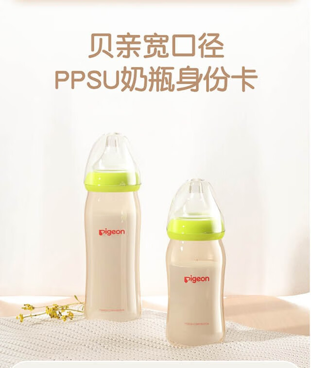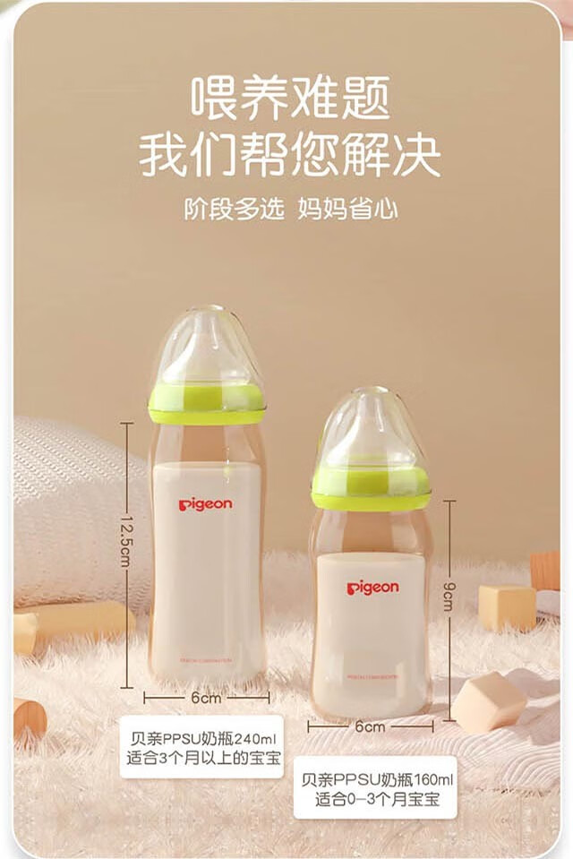 贝亲PPSU宽口径新生儿自然实感160ml/240ml 绿色-240ml【自带L奶嘴】6个月+