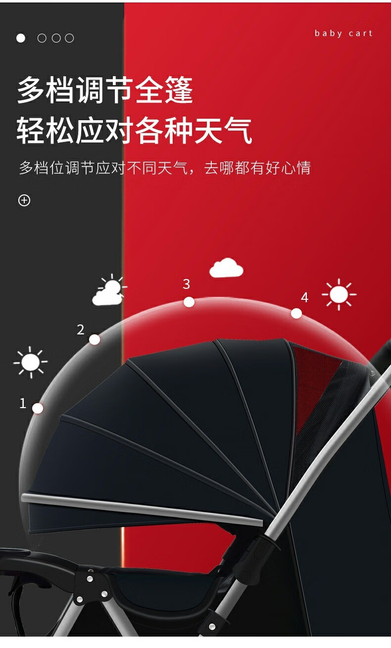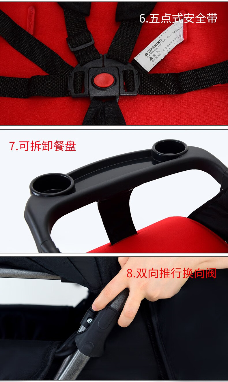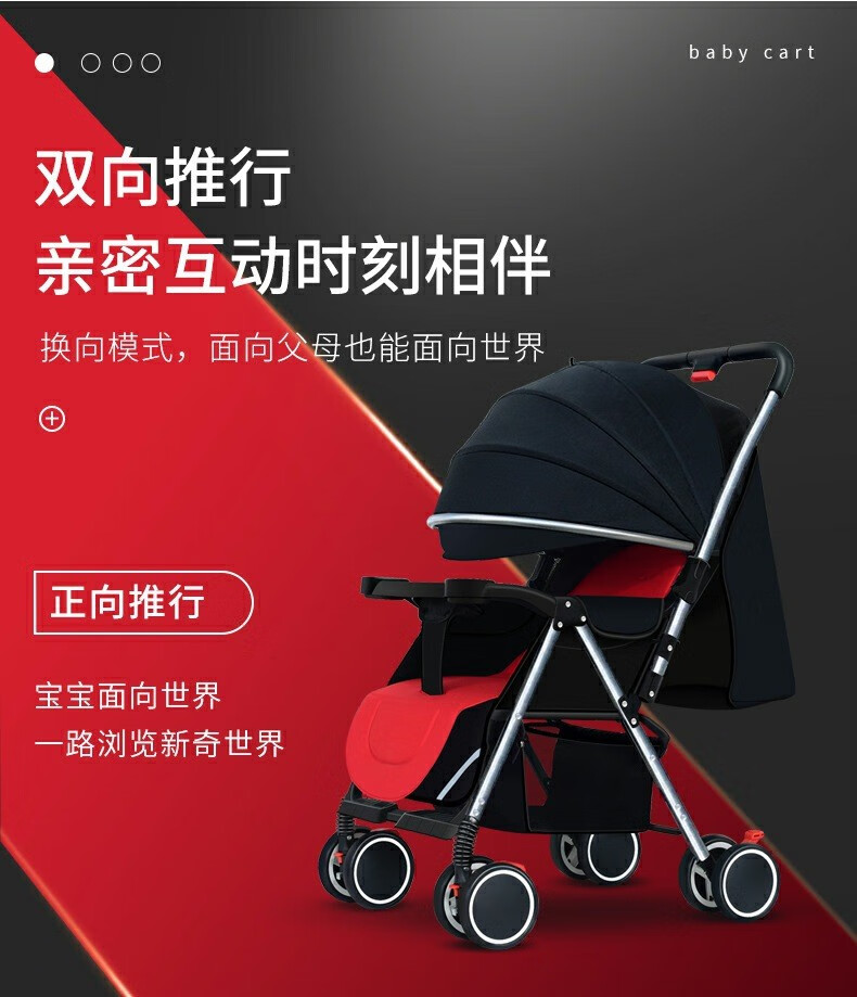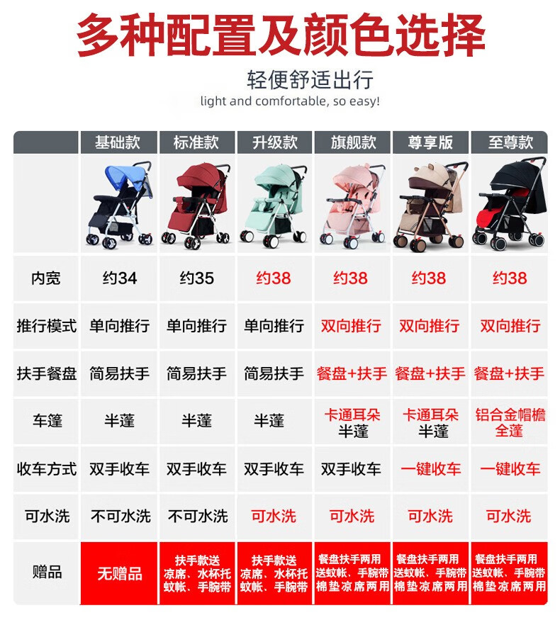 豪威 婴儿推车轻便可坐可躺溜遛娃神器双向儿童手推车可折叠推车 【标准款】天蓝色【带凉席+杯托+蚊帐+手腕带】