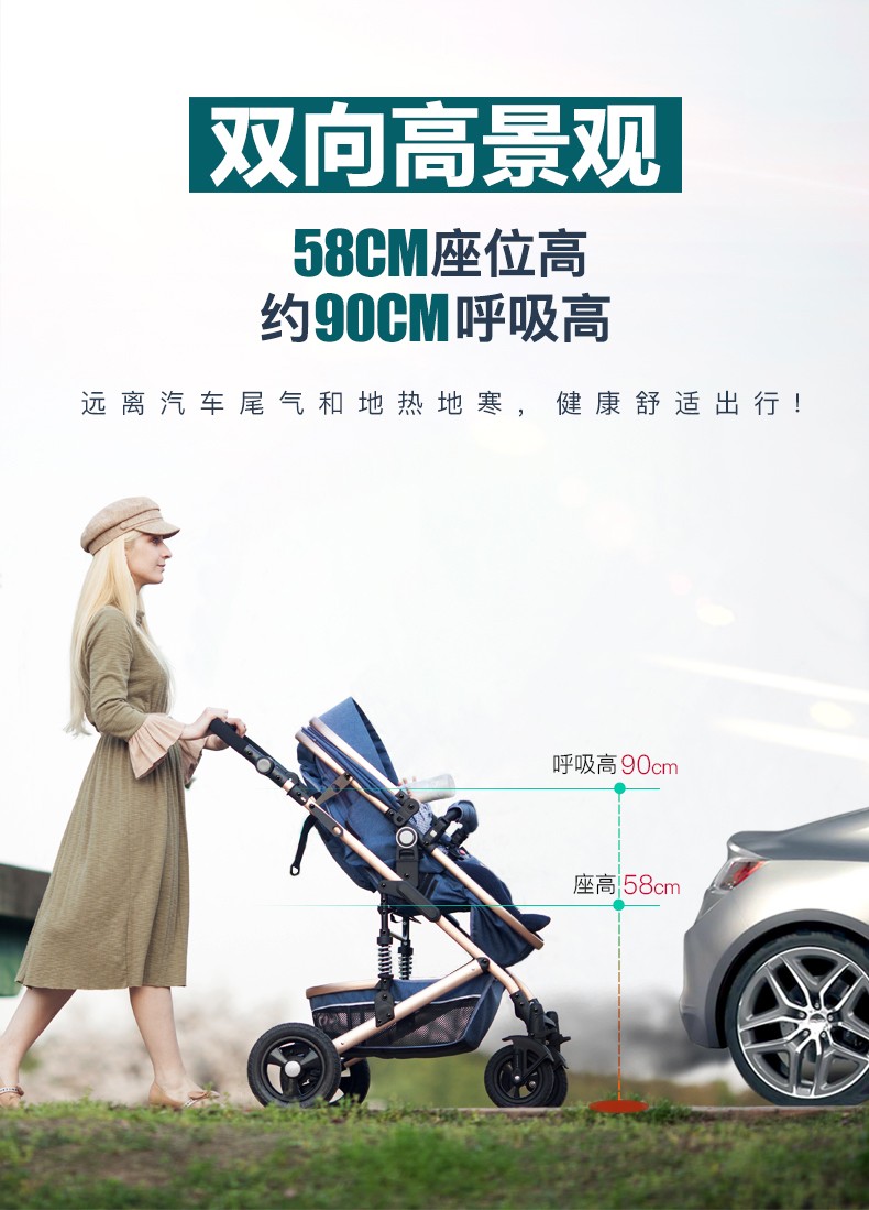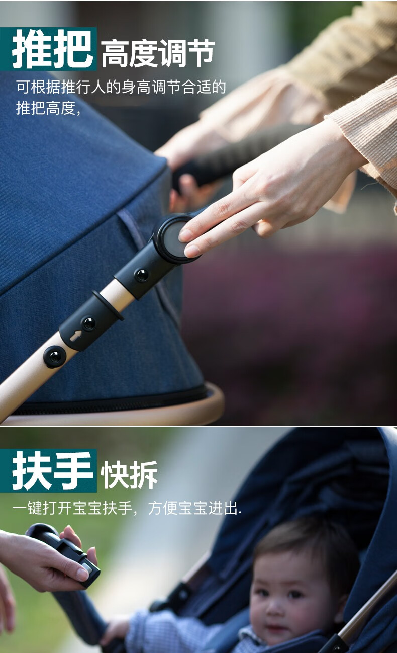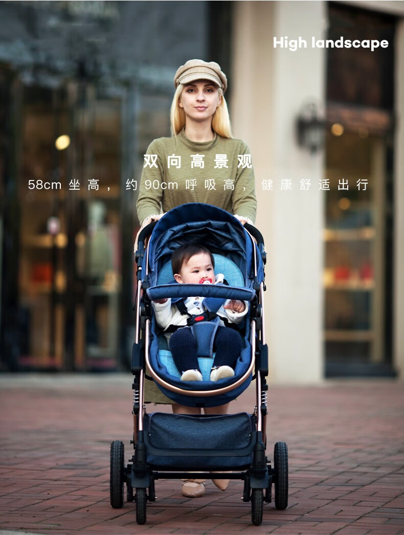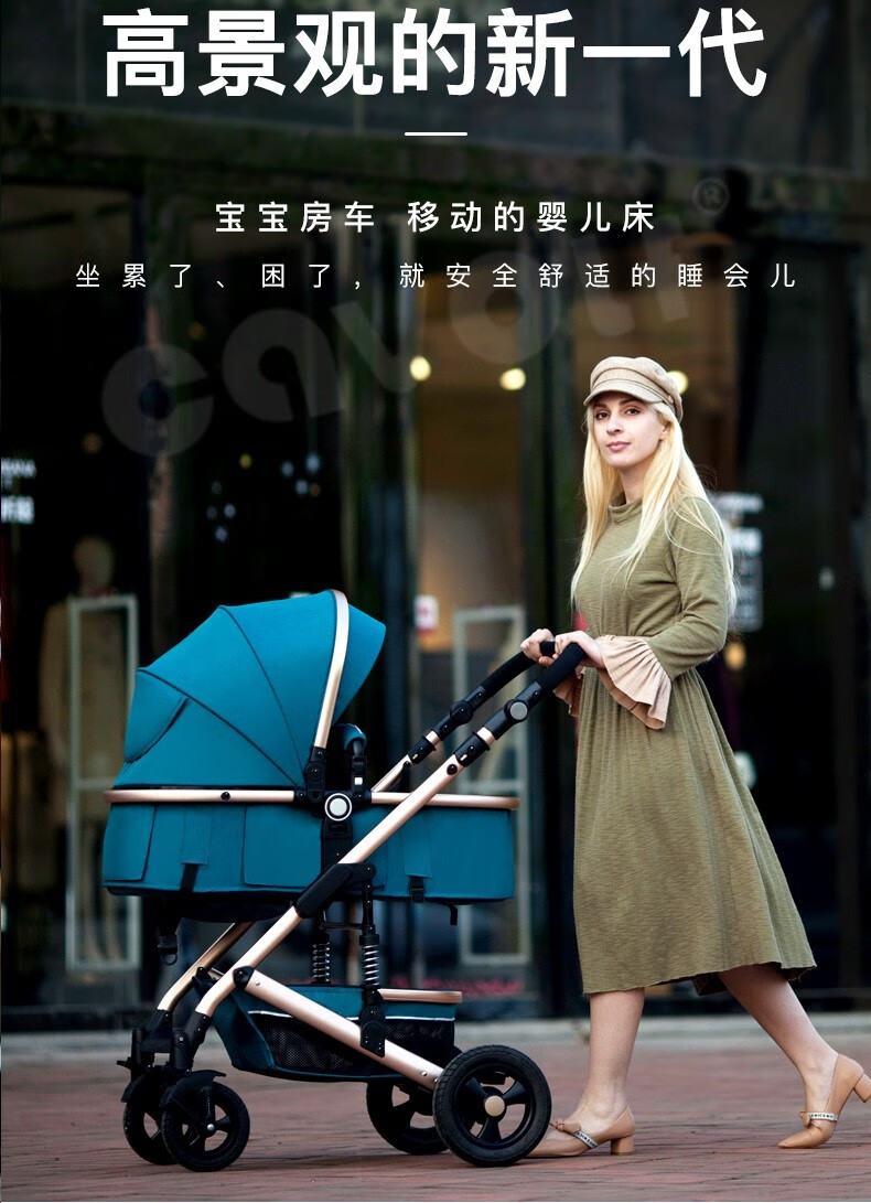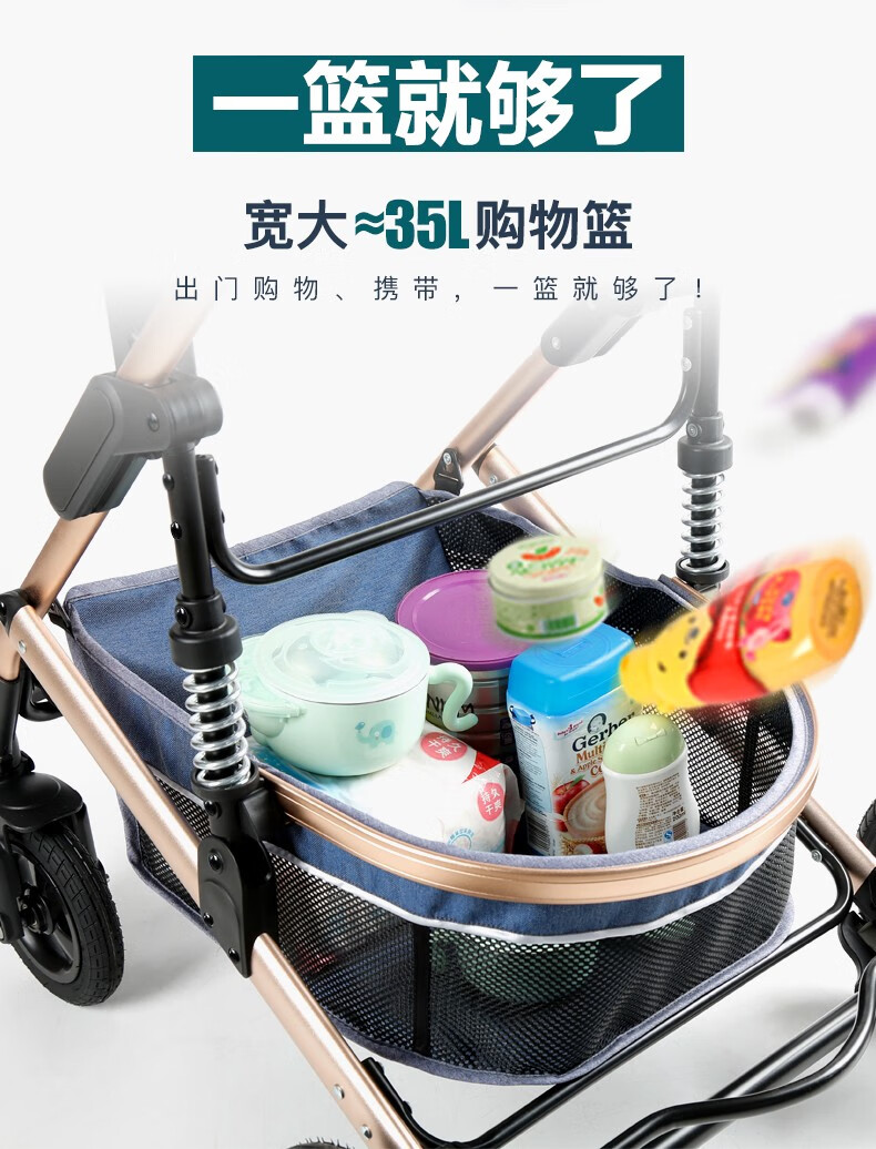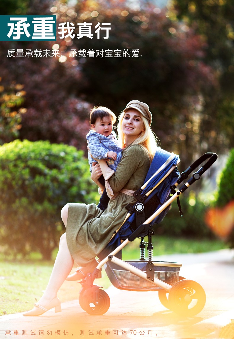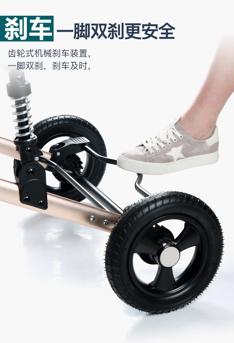 亿宝莱(yibaolai)高景观婴儿推车可坐可躺轻便折叠双向减震新生儿童宝宝推车 卡其色3D立体减震+可坐可躺+后橡胶轮+餐盘