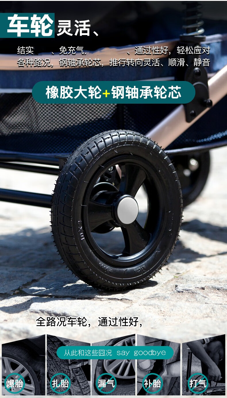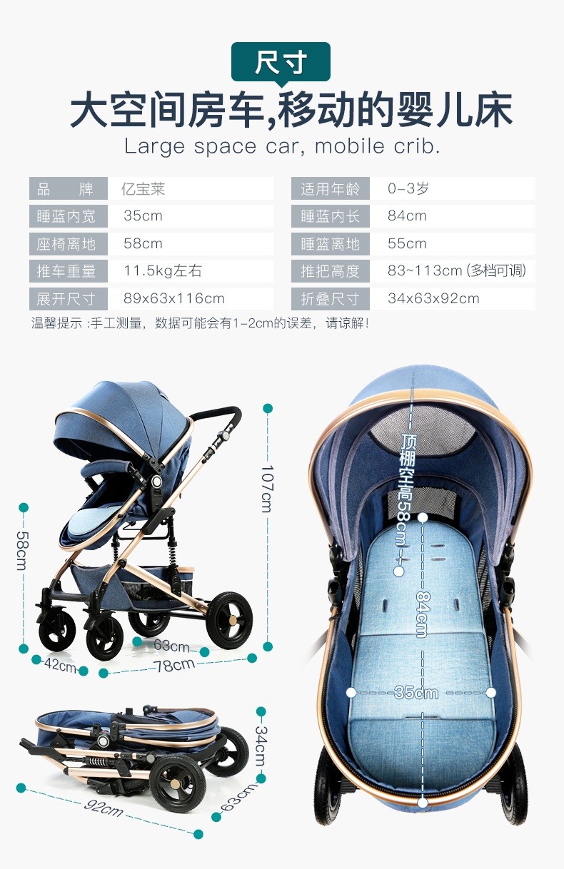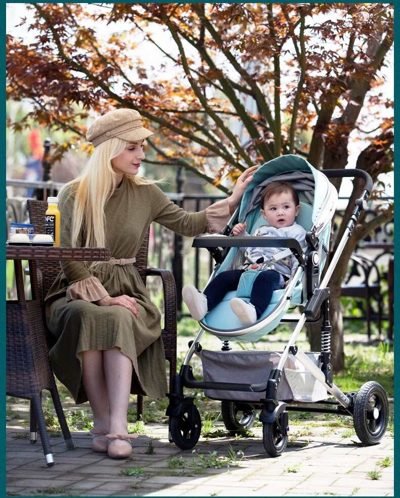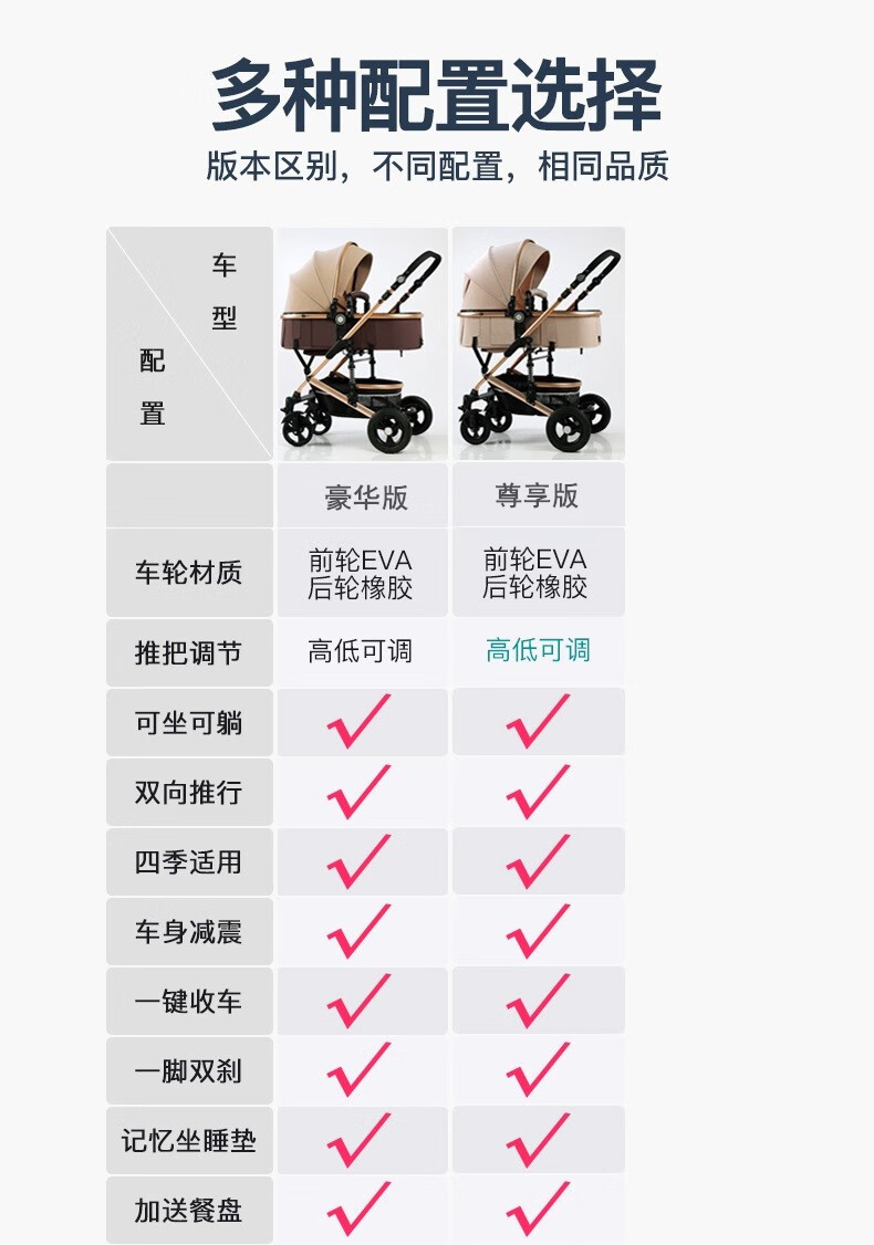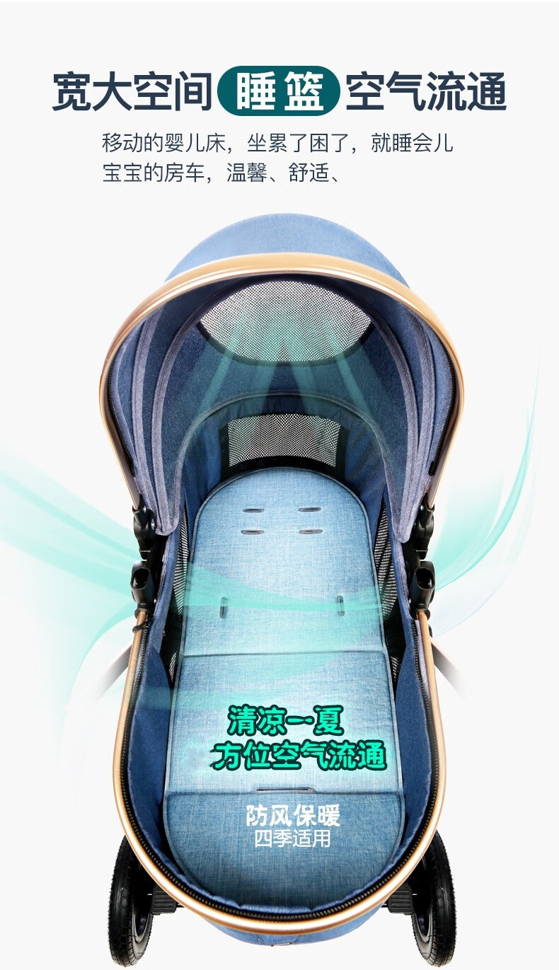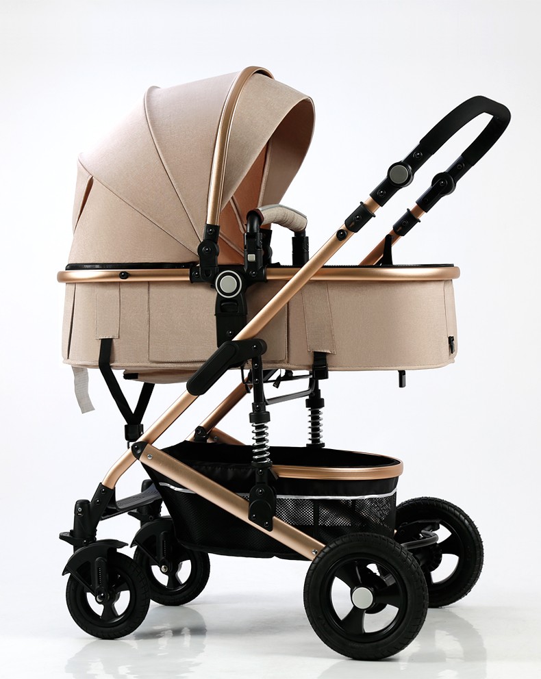 亿宝莱(yibaolai)高景观婴儿推车可坐可躺轻便折叠双向减震新生儿童宝宝推车 卡其色3D立体减震+可坐可躺+后橡胶轮+餐盘