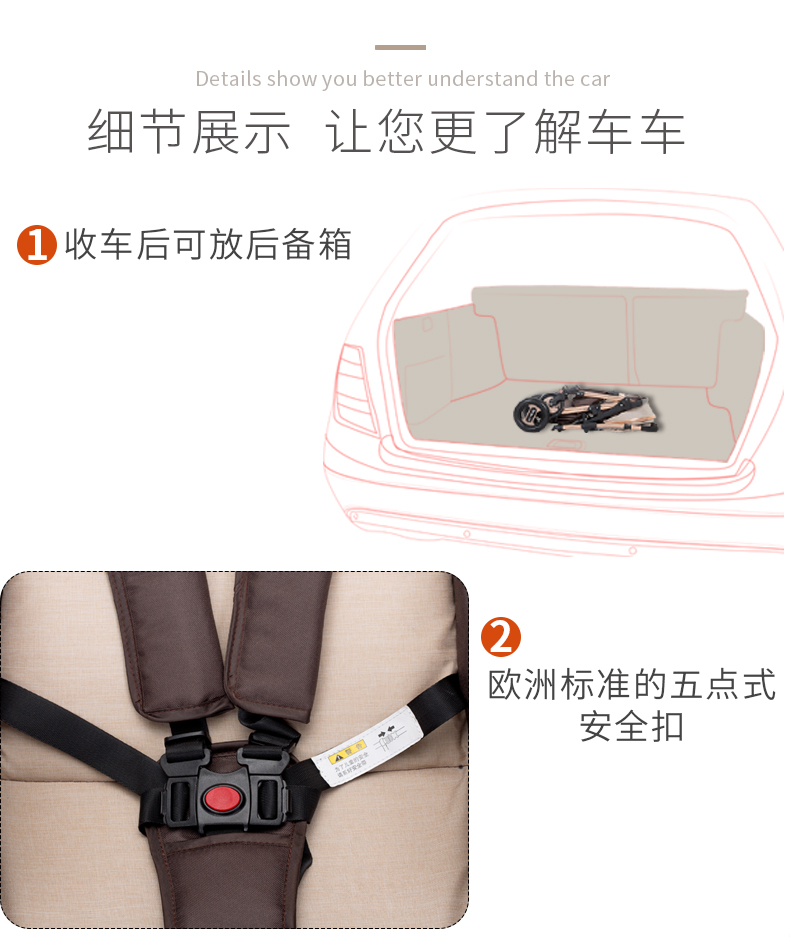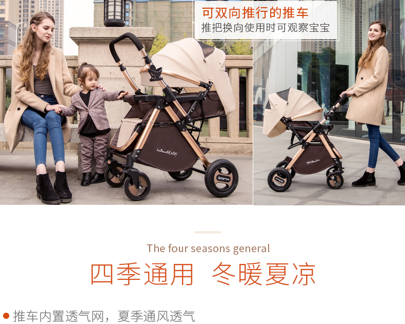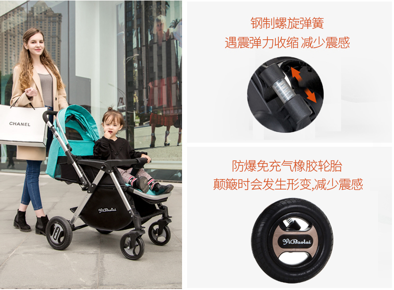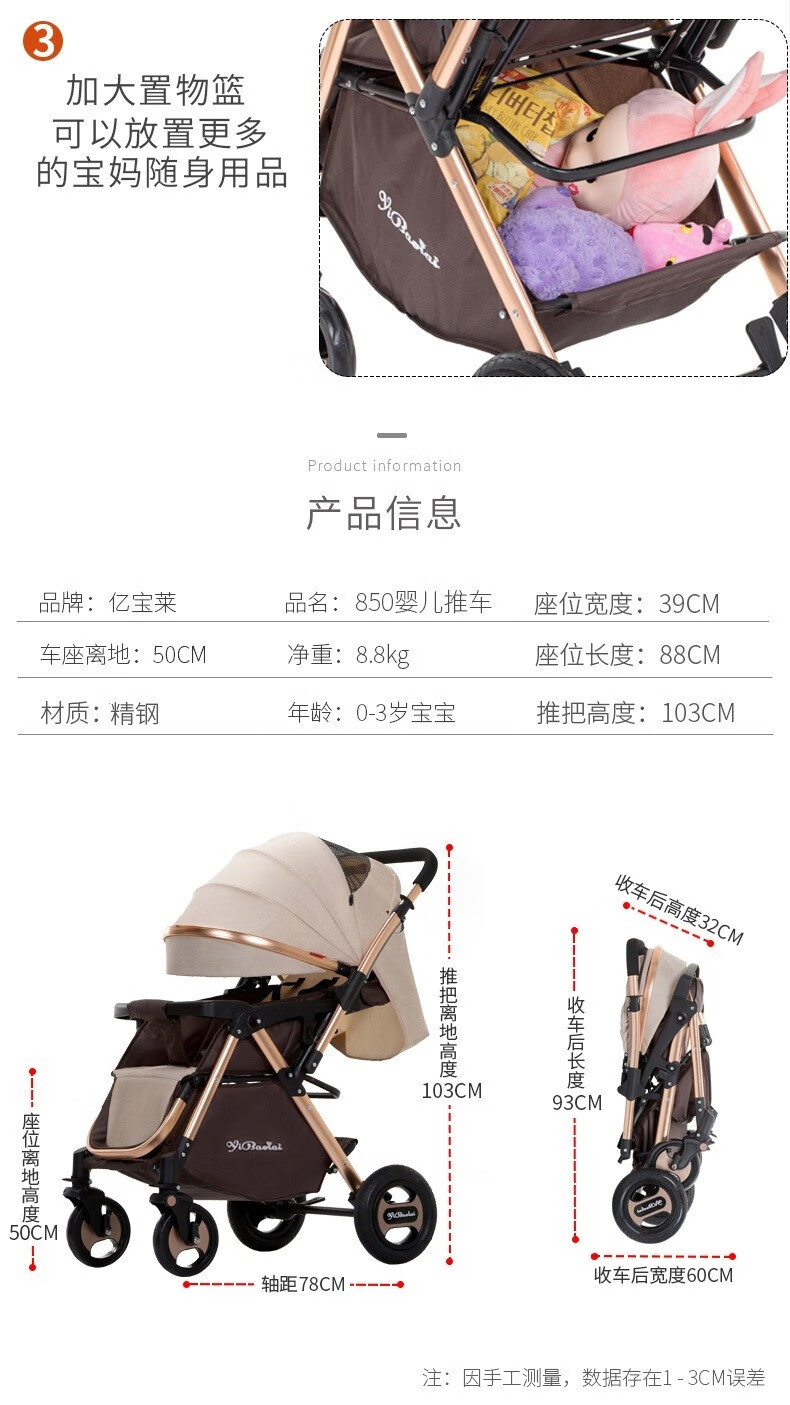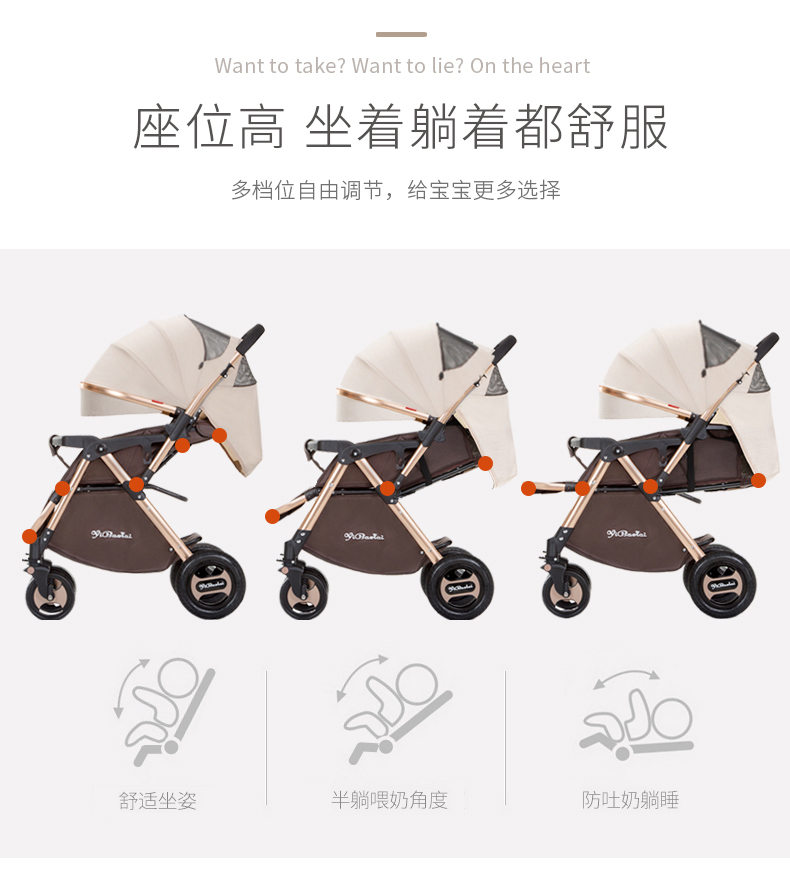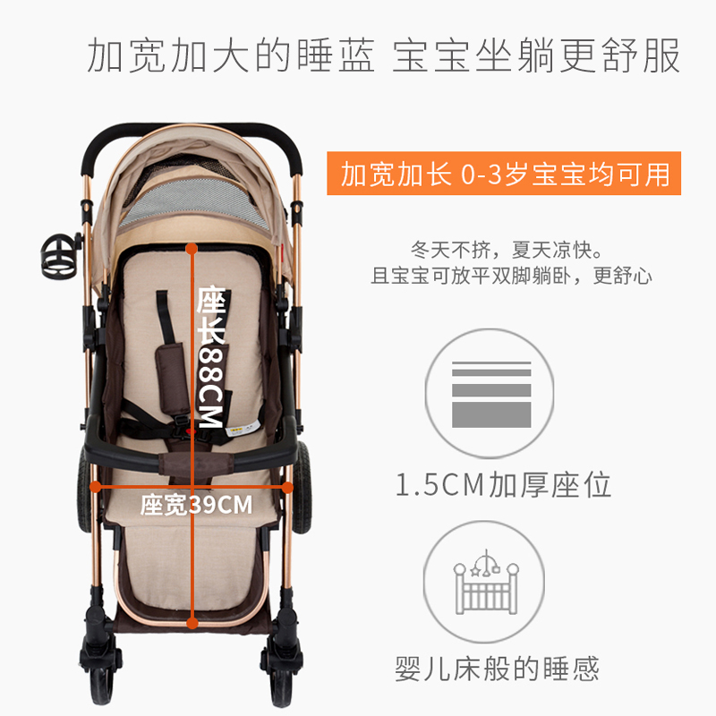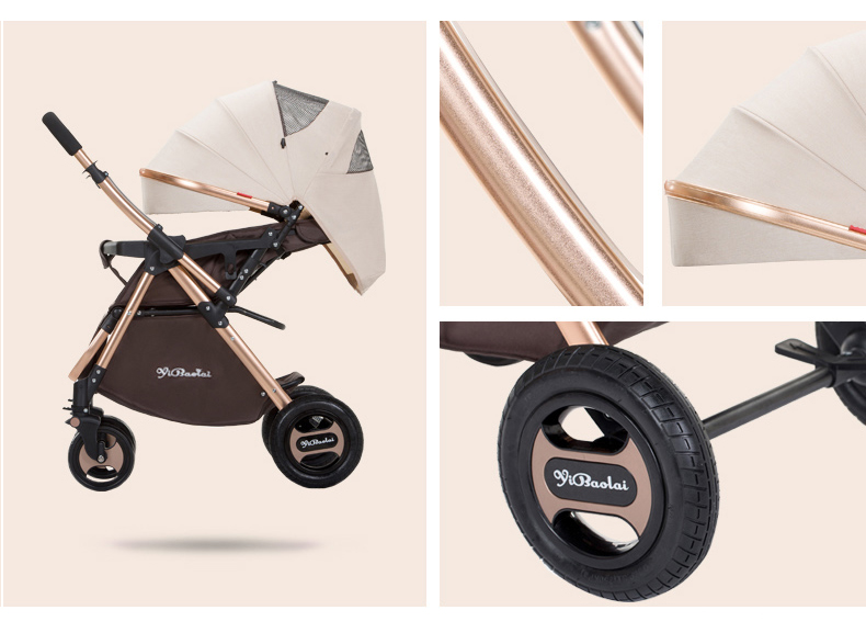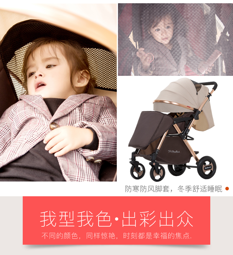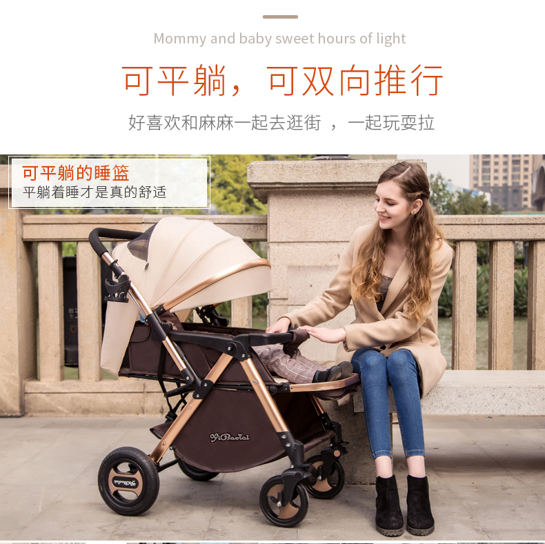 亿宝莱(yibaolai) 婴儿推车高景观可坐可躺轻便携式折叠小孩宝宝伞车bb双向婴儿车 旗舰卡其+可坐躺折叠+四轮橡胶